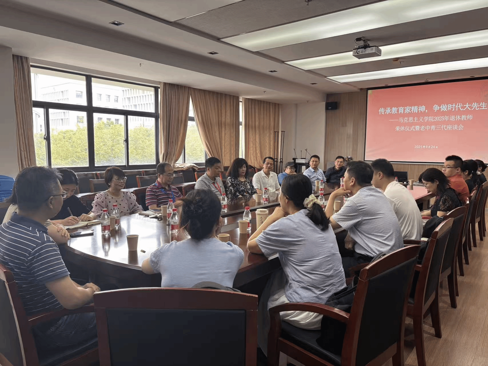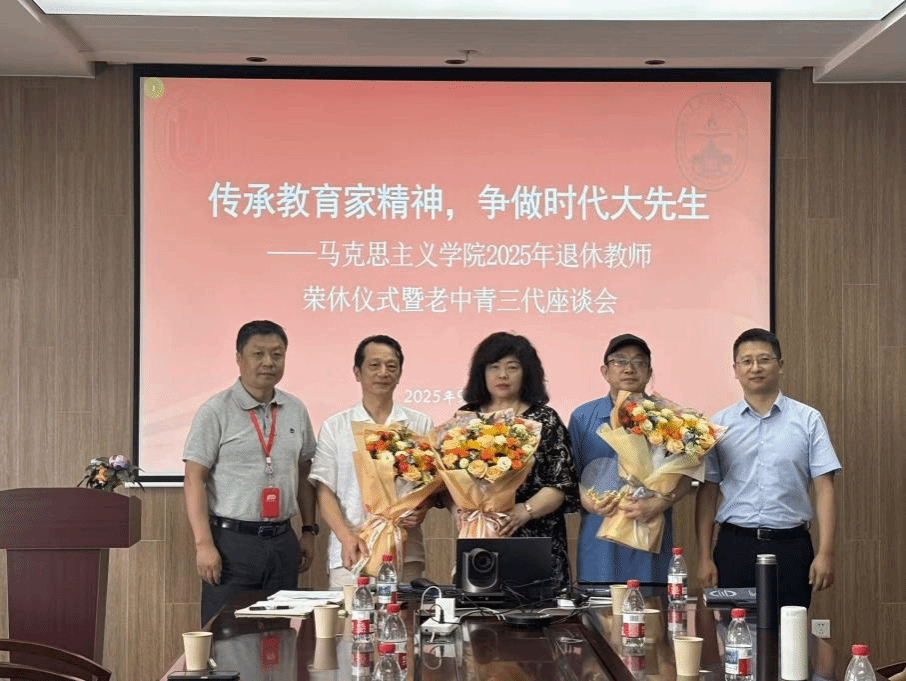仪式伊始,学院党委书记王国建、主持工作副院长叶海涛分别致辞。今年截止目前,学院有5位老师退休,王国建向为学院建设发展付出辛勤汗水、作出重要贡献的荣休教师致以崇高敬意和衷心感谢。同时,他也勉励中青年教师传承前辈风范,弘扬教育家精神,争做塑造学生品格、品行、品味的“大先生”。 叶海涛回顾了几位老师在学术科研、人才培养和学科建设中的突出业绩,他表示,学院将持续做好退休教师服务保障工作,并期待荣休教师一如既往地为学院发展建言献策。他还鼓励青年教师以荣休教师为榜样,坚定理想信念,提升教学科研能力,为推动学院高质量发展贡献青春力量。 在座谈交流环节,教师代表申小翠、徐海峰等先后发言。他们结合自身经历,深情回顾了与到会的三位荣休教师共事期间的点点滴滴,对其在生活上的关怀、教学上的指导、科研上的帮助表达诚挚感谢,表达对荣休教师的崇高敬仰。与会教师纷纷表示,将继承和发扬荣休教师的优良作风,坚守教育初心,担当育人使命。 三位荣休教师分别分享了各自数十载从教生涯的心得体会,畅谈了对教育事业的深厚情感与未来展望,并对学院长期以来的关心与支持表达感谢。他们寄语青年教师要坚定信仰、深耕教学、潜心学术,努力成为新时代党和人民满意的好老师,为马克思主义理论教学研究事业薪火相传贡献力量。